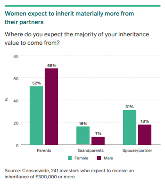 In the UK, women hold the key to wealth. According to the Office of National Statistics, women on average live four years longer than men, which means they’re likely to benefit from inherited wealth. You can see this in the chart taken from a 2025 Pru survey below.